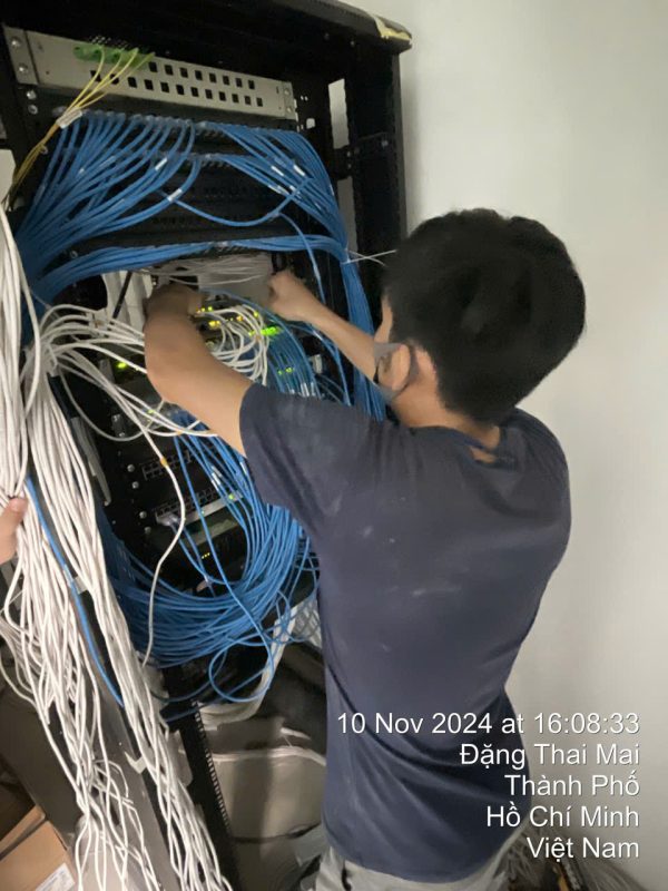 Kỹ thuật viên lắp đặt hệ thống mạng nội bộ